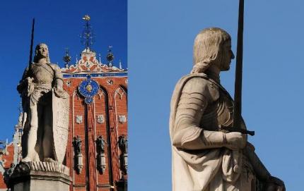 à droite : die historische Rolandfigur steht auf einem Sockel vor dem Schwarzhäupterhaus am Markt (Foto Uwe Gerig)(deutschefotothek.de)